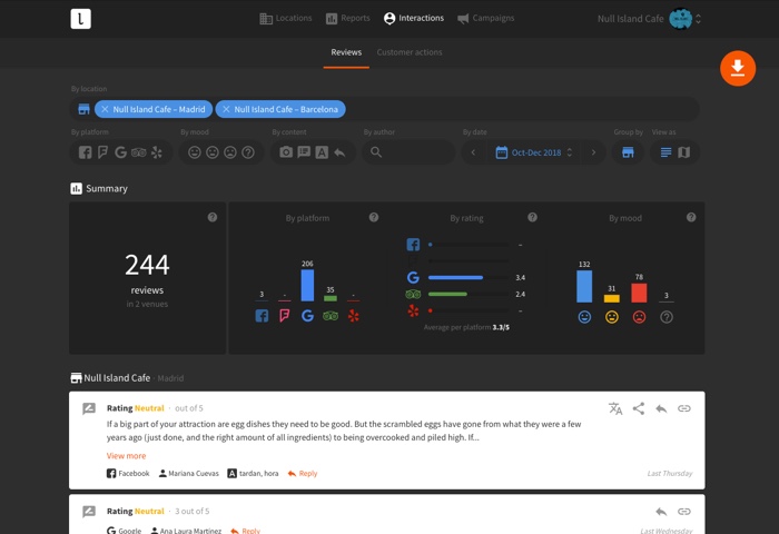 Unfortunately, with so many different platforms that allow users to review businesses, it can be difficult to keep track of where you stand. By centralising your reviews on one platform, you can better manage and scale your online reputation. Utilising a tool that allows you to review, respond and report on location-specific customer reviews and visual content from one single inbox can make the process of review management not only more feasible but also more effective. This ensures no negative reviews fall through the cracks without your awareness, allowing you to address problems in real time. You won’t have to juggle multiple searches or manage alerts from several different platforms.