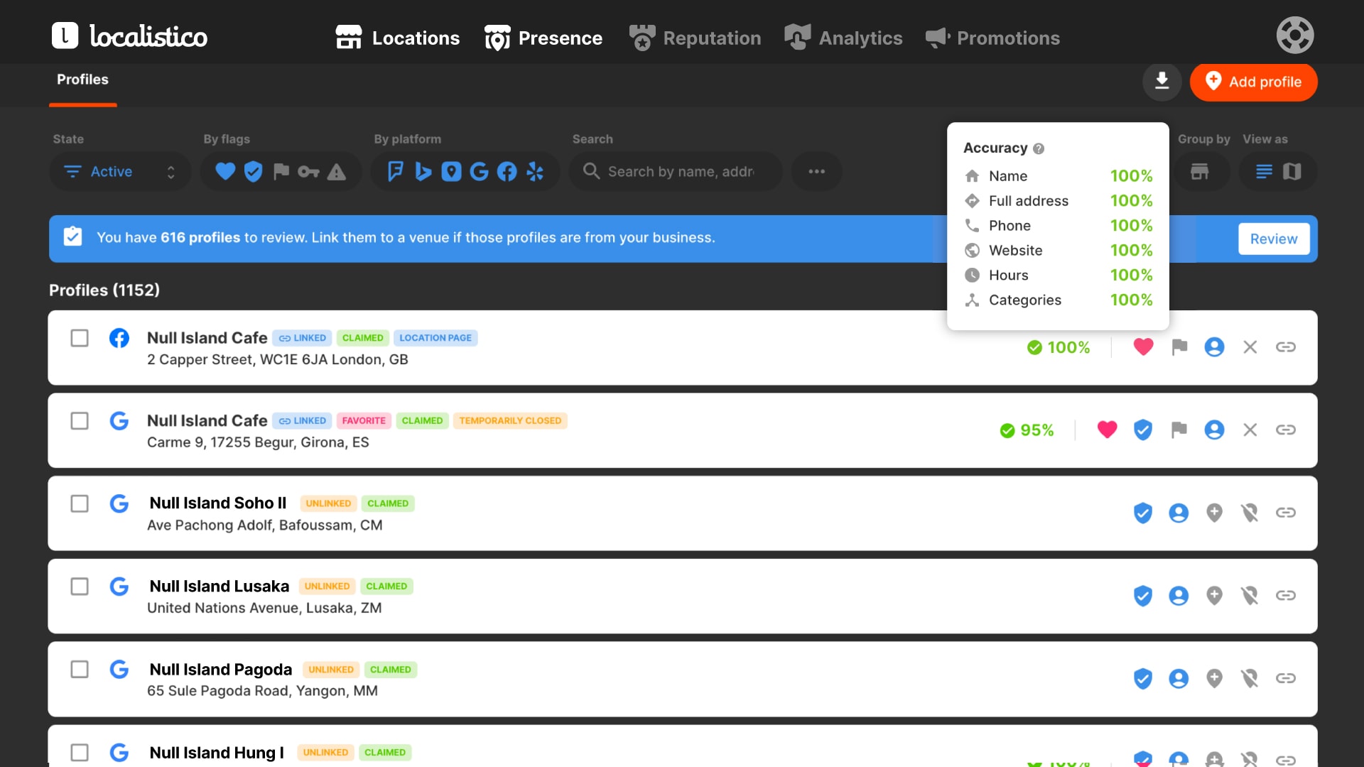 Keep your website store page up-to-date can seem to be an easy task. But what about the rest of the profiles? Customers can quickly lose confidence in profiles that contain inaccurate or inconsistent data, damaging the brand image. Information such as exact location, holiday opening hours, and store details needs to be up to date on both your own website and the major platforms your customers are using.